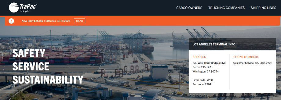 TraPac, Inc. is a container terminal operator and vessel stevedore that provides port terminal services to the U.S. West Coast. TraPac has been a Port of Los Angeles tenant since 1987. Based in Wilmington, Calif., TraPac also operates a terminal at the Port of Oakland.